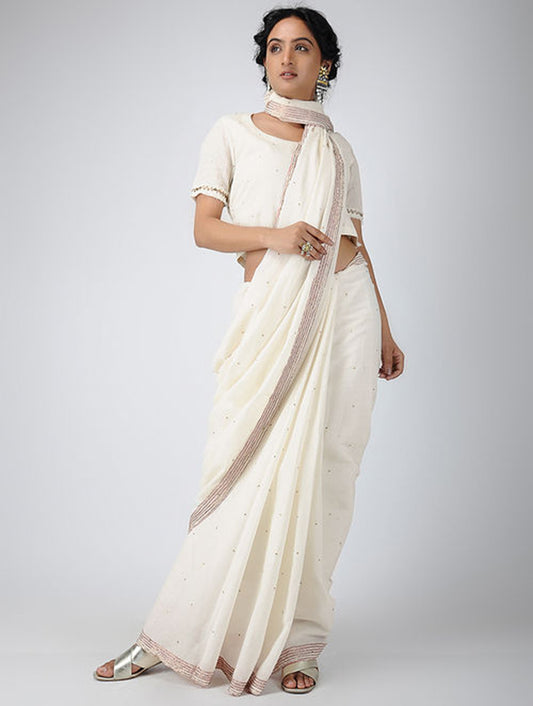 Chamki Beige Cotton Gota Patti Kurta, Pants & Dupatta