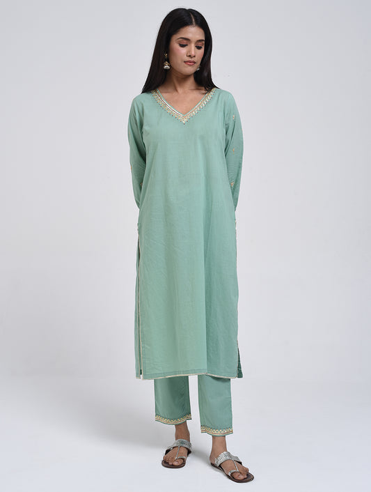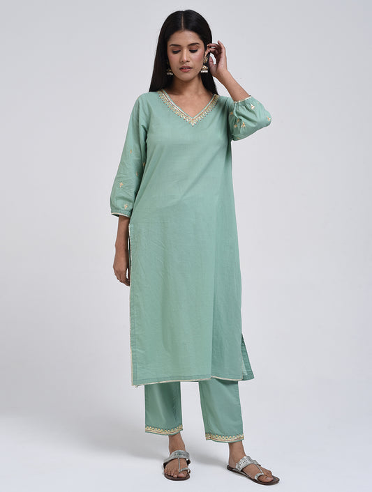 Chamki Green Cotton Gota Patti Kurta, Pants & Dupatta