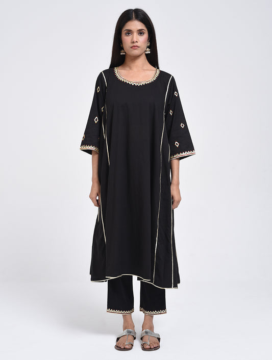 Chamki Black Cotton Gota Patti Kurta, Pants & Dupatta