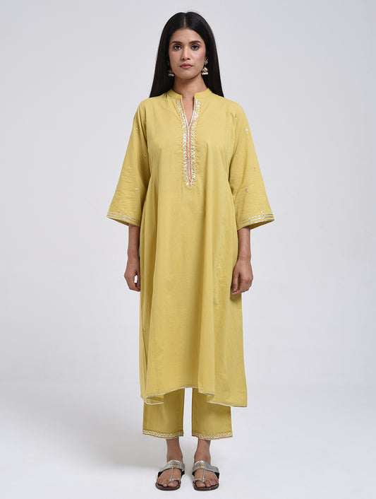 Chamki Lime Yellow Cotton Gota Patti Kurta