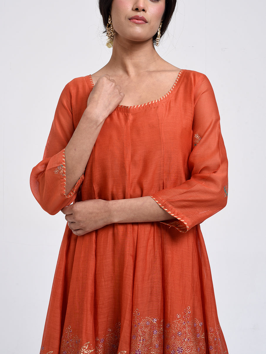 Gudhal Rust Cotton Silk Anarkali Kurta, Pants & Dupatta
